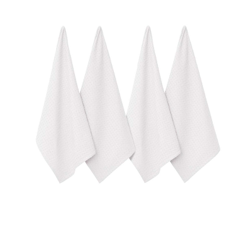 J Elliot Home Waffle Set of 4 Cotton Tea Towels 50 x 70 cm White