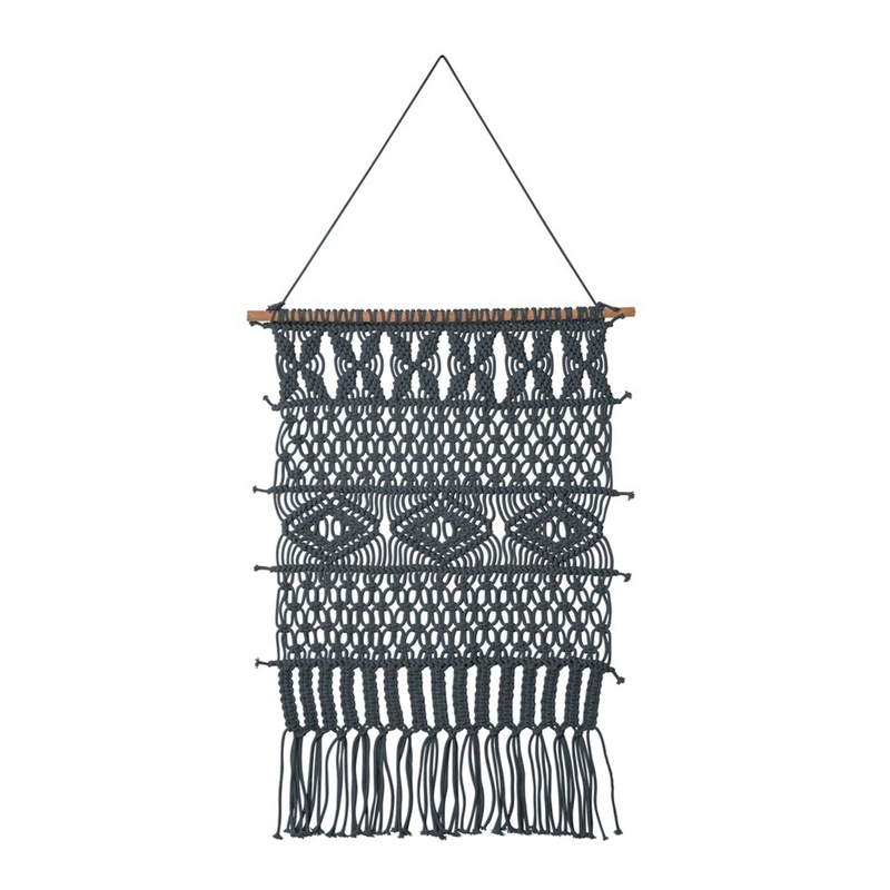 The Mathias Wall Hanging Charcoal 45 x 65 cm by J.elliot is intricately handmade using 100% cotton available in charcoal colour. The knitted design detail throughout the wall hanging adds the perfect amount of movement, texture and style for any space. (As each wall hanging is handmade, there may be slight variations.)