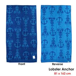Jacquard Velour Reversible Beach Towel Blue Lobster Anchor