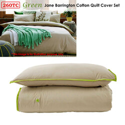 This Jane Barrington 260TC 100% Cotton Quilt Cover Set Taupe/Green creates a minimalist style and welcoming bedroom vibe. It features solid colour design in soft colour tones of taupe and green that will instantly spruce up any bedroom that needs a makeover. Made from quality and soft touch 100% Cotton fabric in 260 thread count that is soft against the skin for a relaxing night's sleep.