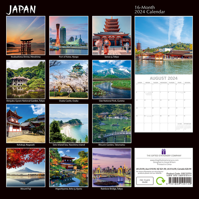 Japan 2024 Square Wall Calendar 16 Month Premium Planner Christmas New Year Gift