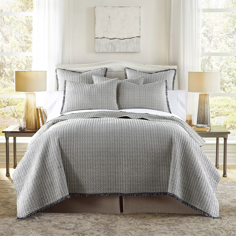 The Lexington 3 Piece 100% Cotton Coverlet Set by Jenny Mclean features classic printed design with fringing all around is beautifully crafted Coverlet with matching Pillowcases. This will ensure a good night sleep. Jenny Mclean Lexington coverlets come in eye-catching design in soft Black on White fabric makes the set special, simple and elegant. Jenny Mclean Lexington Coverlet sets are so smooth, wonderfully soft and lovingly cool on the skin. The simple yet elegant design is bound to lift any bedroom. Made from all cotton outer and contains a light-loft cotton fill for breathability and comfort. Reverse has same colour and print and can be used on both sides.