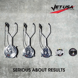 The Jet-USA has a stainless steel body with two nozzles spinning at 2500 RPM mounted on 3 corrosion-resistant castors for consistent coverage. Powered by up to 4000 PSI this heavy-duty cleaning disc delivers the outstanding results you??e come to expect from Jet-USA.