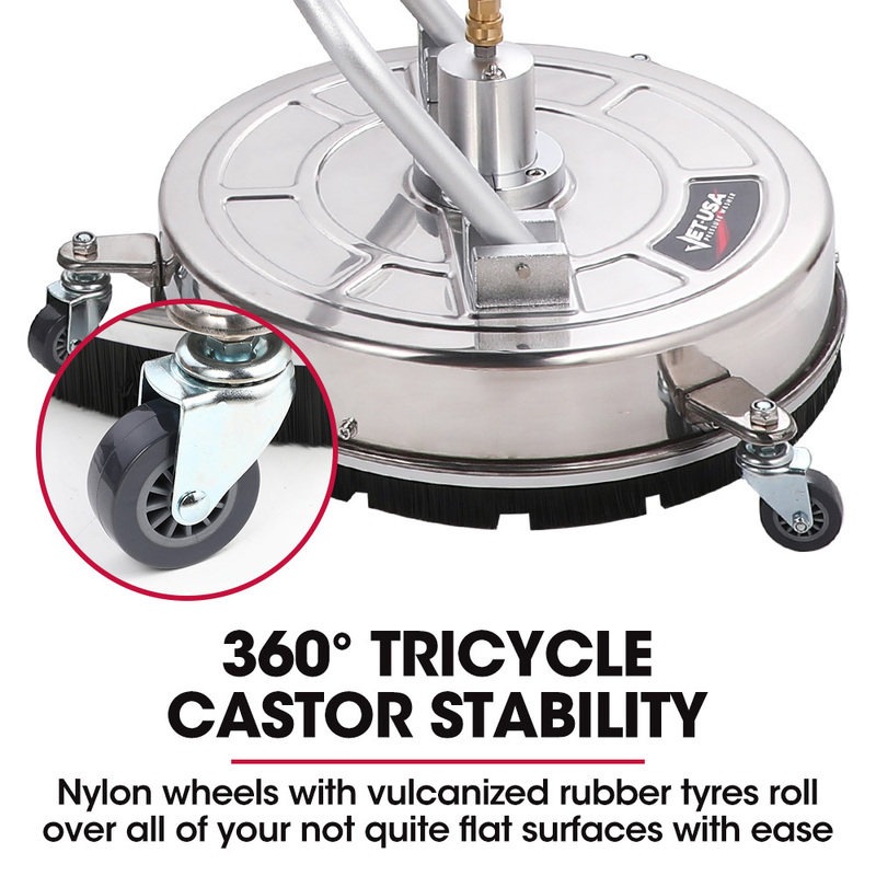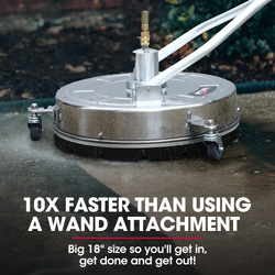 The Jet-USA 18' Stainless Steel Pressure Washer Surface Cleaner Attachment is the perfect tool to clean your concrete driveway, patio, deck or garage floor. This easy gliding disk puts powerful cleaning and ease of use at your disposal with the wide 46cm cleaning area.