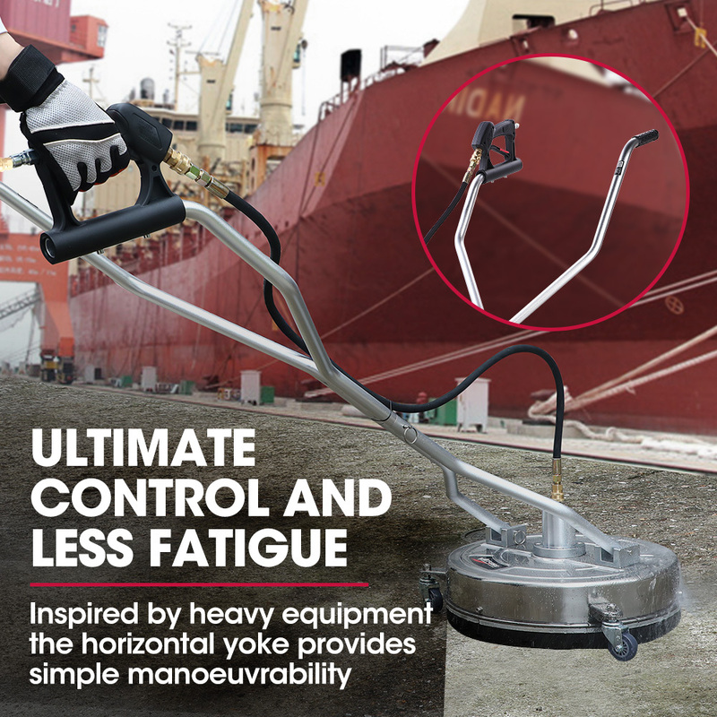 Jet-USA 18" Stainless Steel Pressure Washer Surface Cleaner with Yoke Handlebar, 3/8" Fitting, For Concrete Driveway Patio Floor