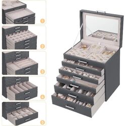 - Organize your jewelry with this 6-tier jewellery box. Keep all your precious items in one place and easily access them when you need them. This box is the perfect way to store your jewelry and keep it safe, while also adding a stylish touch to your home. With its sleek design, it's sure to be a conversation starter when you invite guests over.