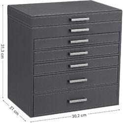 - Organize your jewellery in style. This jewellery box offers drawers of varying heights to neatly store and organize your accessories. Perfect for bracelets, earrings, necklaces, rings, watches and sunglasses, you'll never have to search for the perfect piece again.