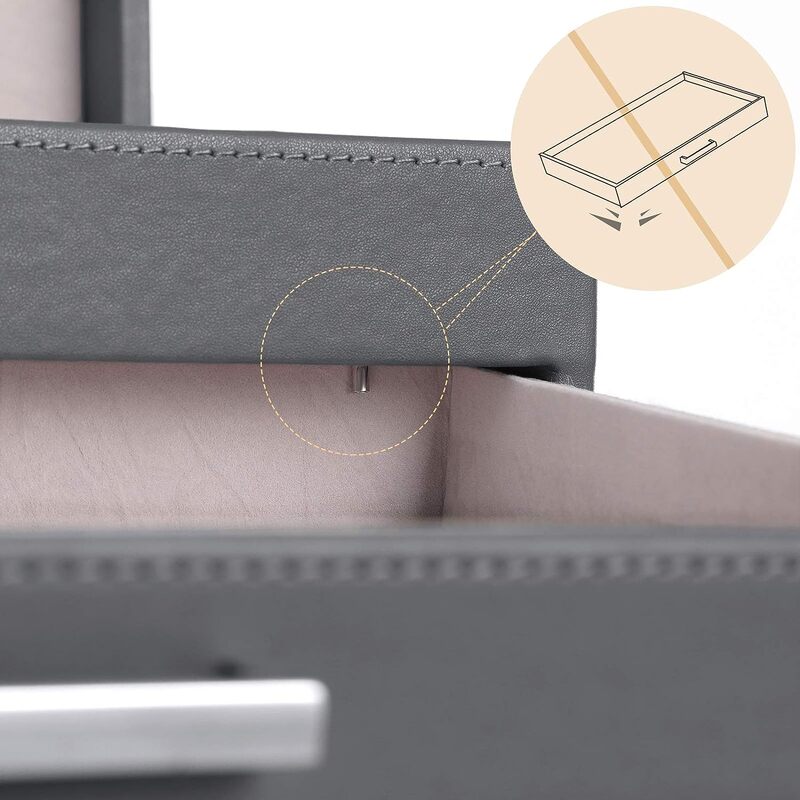 - Keep your precious items safe and sound with these drawers. Featuring a stopper to prevent them from slipping out when opening, plus an MDF frame and velvet lining to protect them from bumps and scratches, you can be sure your items will remain in pristine condition.