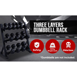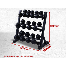Want a gym-quality dumbbell rack at home? The 3 Tier Dumbbell Rack is the perfect equipment for you. It has three angled tiers that fit various dumbbell sizes and styles and is made with a sturdy steel frame with a powder coat finish. This heavy duty equipment allows you to store and organize your dumbbells; whether cast iron or solid steel conveniently. The 3 Tier Dumbbell Rack boasts an ergonomic design and commercial-grade steel construction.