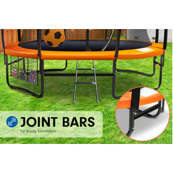 This trampoline uses linked legs for superior stability and structure of the legs also minimises the tendency for legs to dig into the ground. Legs also feature re-enforced joint bars to enhance strength and stability.