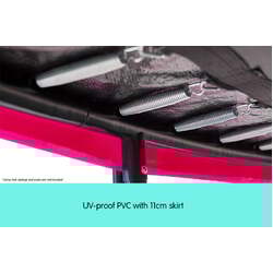 The pad is fitted with an 11cm PVC skirt which hangs down over the frame. This assists in locating the padding and also improves the appearance of the trampoline.