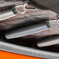 This is a heavy trampoline and uses linked legs and grounding straps for superior stability. The structure of the legs also minimises the tendency for legs to dig into the ground. Legs also feature re-enforced joint bars to enhance strength and stability.