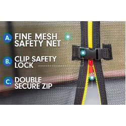 - Trampoline Entrance: Zip-and-clip safety lock