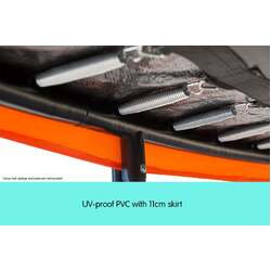 The pad is fitted with an 11cm PVC skirt which hangs down over the frame. This assists in locating the padding and also improves the appearance of the trampoline.