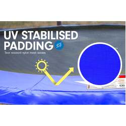The padding cover of the trampoline is UV stabilised and has embedded nylon mesh, ensuring the padding will last under the harsh Australian sun.
