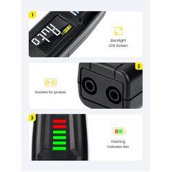 - Auto ModeOperating with auto mode, the electrical checker automatically identifies what is being measured among Voltage, Resistance and Continuity, and shows the reading on display.