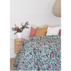 Kantha Quilt Indian Quilt Block Print Quilt Bedspread Bohemian Boho Cotton Throw Quilt Handmade Blanket Doona King Size