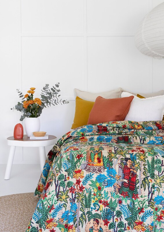 Add that touch of colour to your lounge/bedroom with this Vintage Hand Made Kantha Bed Spread/ Throw/ Quilt from Linen Connections.