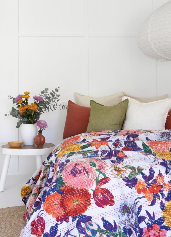 Add that touch of colour to your lounge/bedroom with this Vintage Hand Made Kantha Bed Spread/ Throw/ Quilt from Linen Connections.