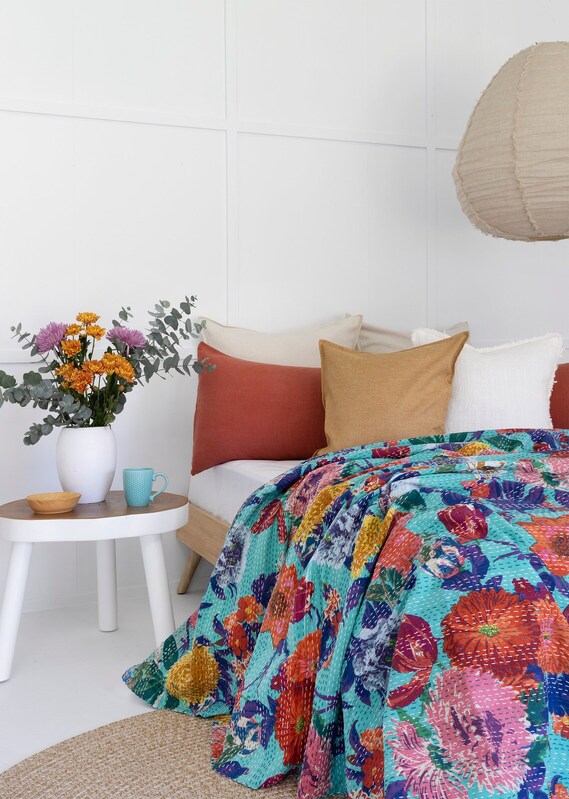 Whether you drape it over your bed, couch, or favourite chair, it's sure to make a statement and breathe new life into your decor. Bright colours add vibrancy to your living space / bedroom. Buy a few to add a kaleidoscope of color to any room. Purchasing a Fair trade Kantha Quilts creates employment opportunities and a sustainable life for the women artisans and their families.