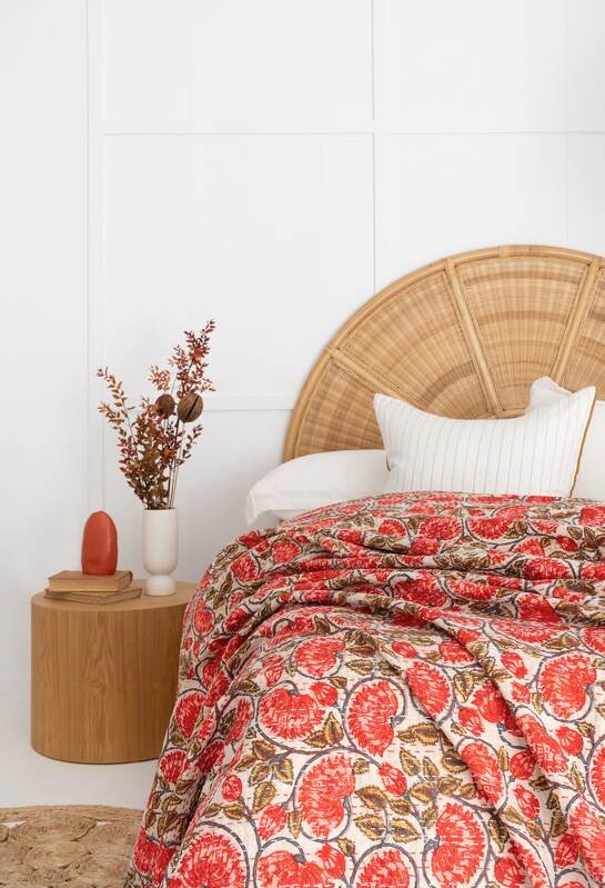 Kantha Quilt Indian Quilt Block Print Quilt Bedspread Bohemian Boho Cotton Throw Quilt Handmade Blanket Doona King Size