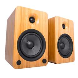 Kanto YU6 200W Powered Bookshelf Speakers with Bluetooth? and Phono Preamp - Pair, Bamboo - Undeniably loud. Satisfy your craving for powerful, full-impact sound with YU6. Armed with a formidable Class D amplifier pumping out 200W peak power, YU6 will have you questioning what it really means to be loud. Its 5.25??Kevlar? drivers and 1??silk dome tweeters inject detailed sound into every square inch of living space, evoking emotions that can only be expressed with an ear-to-ear grin. A built-in phono preamp makes it easy to spin your favourite tunes, while Bluetooth? connectivity lets you keep the party going from the palm of your hand.