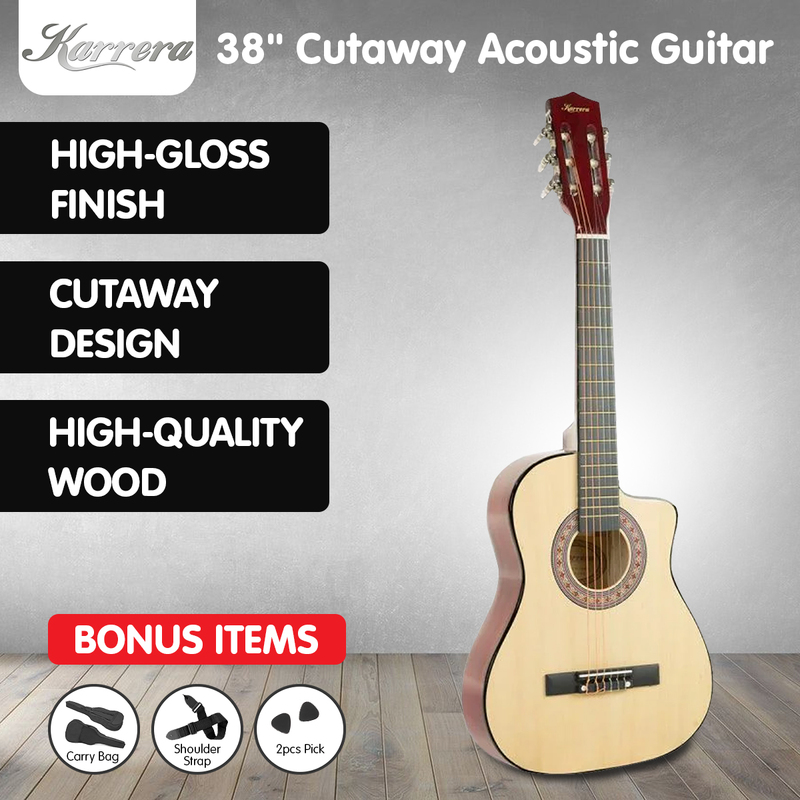 Karrera 38in Cutaway Acoustic Guitar with guitar bag - Natural