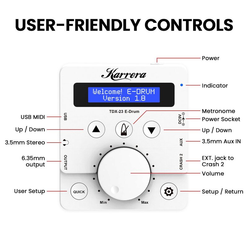Karrera X23 Electronic Drum Kit With Quiet Mesh Drum Heads, Editable Sound Kits, Kick Pedal And Silicone Kick Drum, Usb Midi And 420 Sound