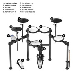 - Standard mesh drums (snare and 3 toms)