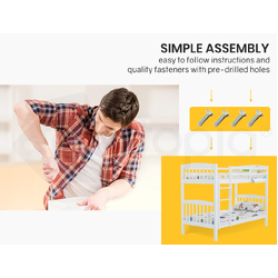 Kingston Slumber 2in1 Double Single Bunk Bed Kids Solid Timber Pine Beds Children Bedroom Furniture