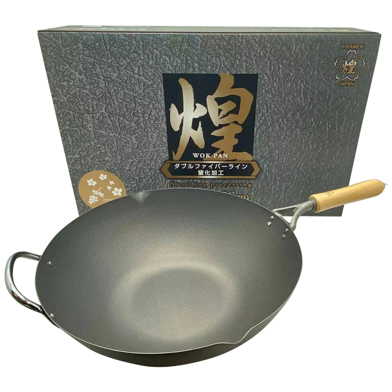 Kirameki Premium Pure Iron Nitriding Processing Stir-fry Wok (Made in Japan)