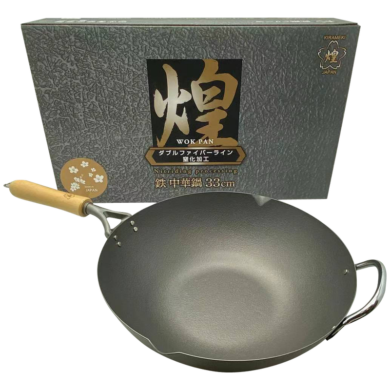 Kirameki Premium Pure Iron Nitriding Processing Stir-fry Wok (Made in Japan)