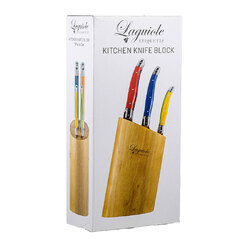 Forming part of the Laguiole Etiquette range is the colourful 7-piece Multi-Colour Kitchen knife Block in an Oak Wood Knife Block. Oak wood is regarded as the most durablehardand fungal-resistant sustainable wood.