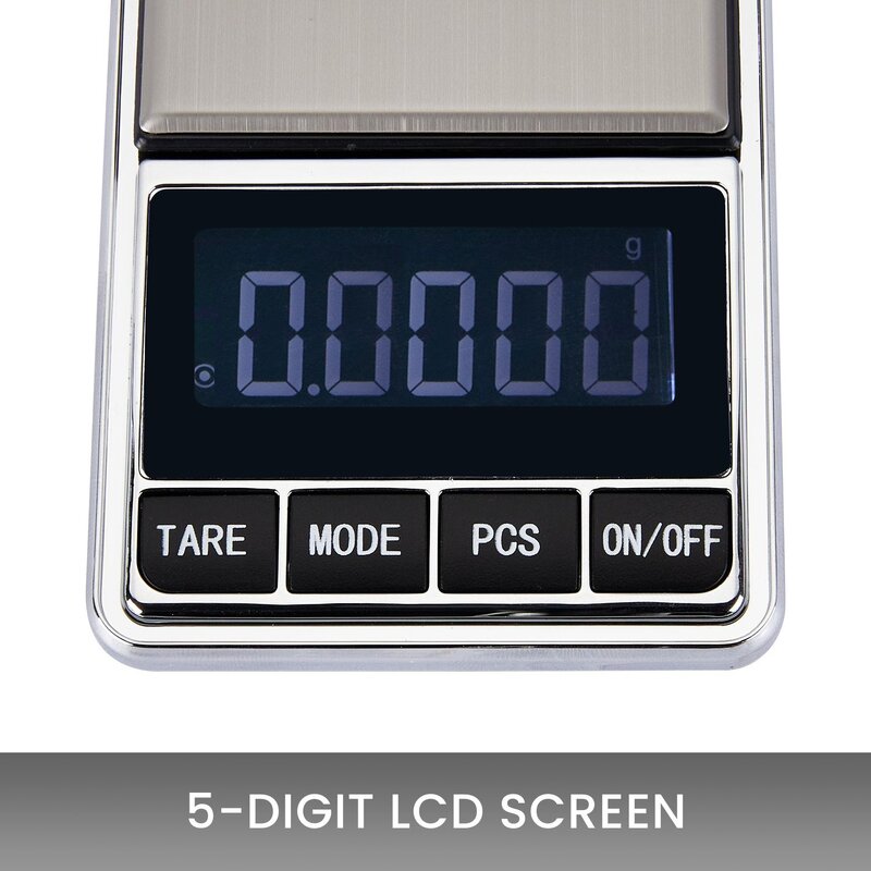 Powered by two AAA batteries, with a stainless steel tray, 5 digit LCD display, tare function, auto shutoff, and a weighing capacity of 500g maximum, while weighing only 117 grams.