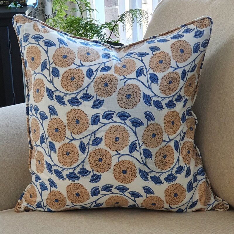These soft cotton voile decorative cushions are designed in Melbourne and individually hand-block-printed by qualified skilled artisans. They are luxurious, sustainable, high quality, and durable, complementing a range of interior styles including French provincial, country cottage, Hamptons, coastal, contemporary and traditional.