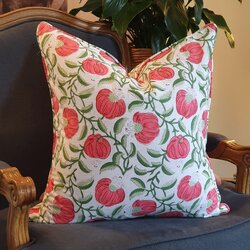 These soft cotton voile decorative cushions are designed in Melbourne and individually hand-block-printed by qualified skilled artisans. They are luxurious, sustainable, high quality, and durable, complementing a range of interior styles including French provincial, country cottage, Hamptons, coastal, contemporary and traditional.