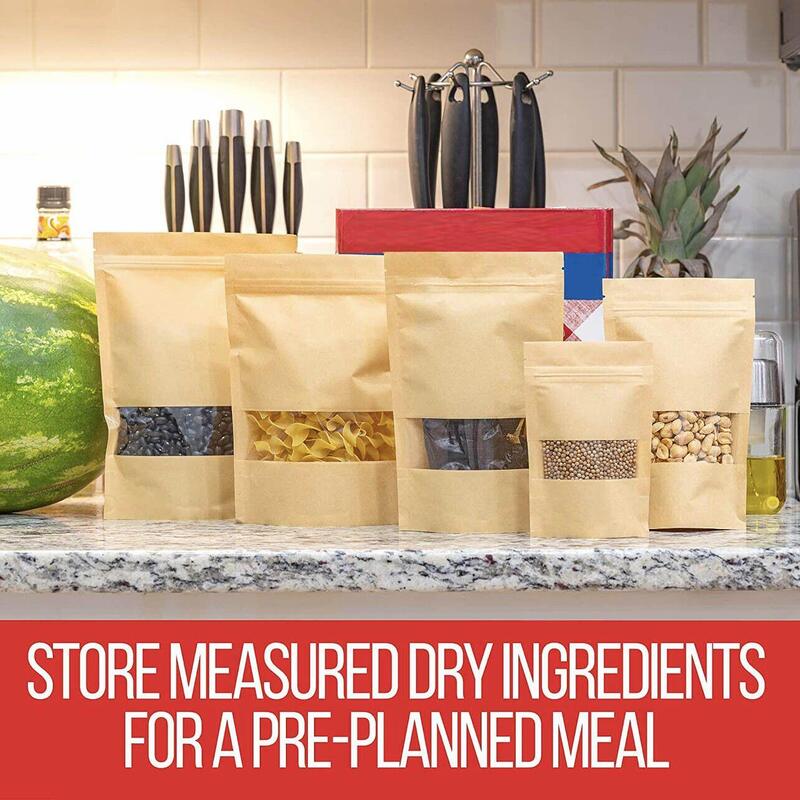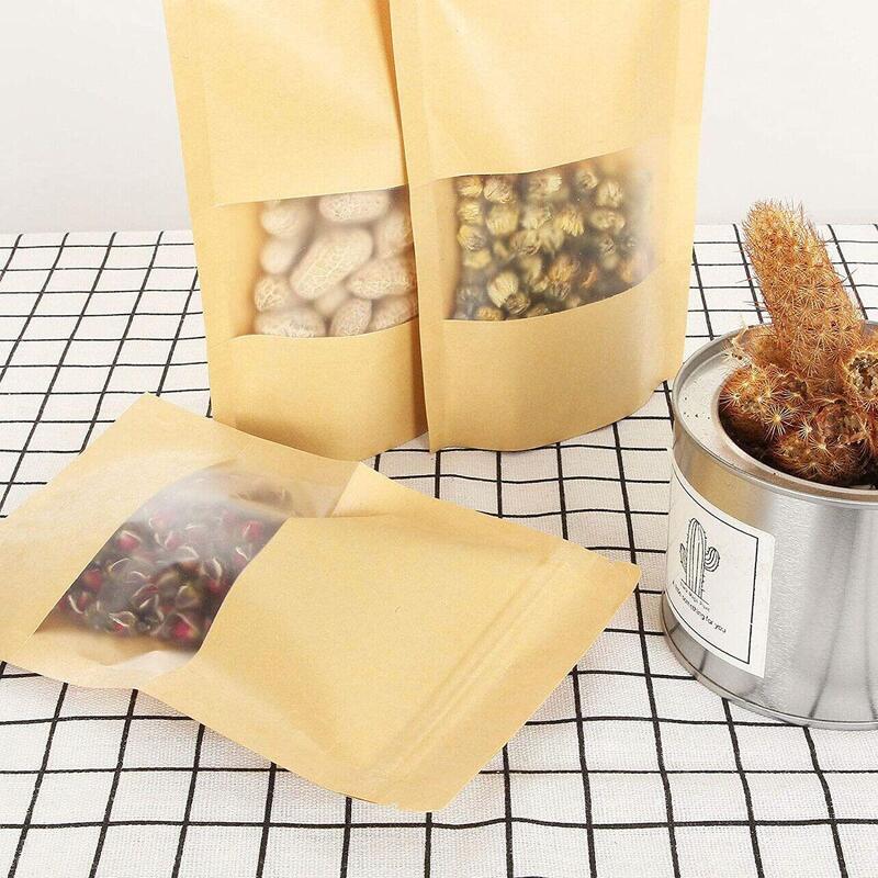 Kraft Paper Bags Stand Up Zip Zipper Lock Resealable Window Pouches Heat Seal Au