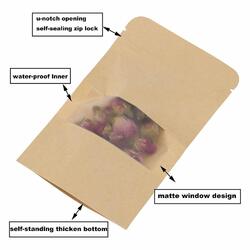 Kraft Paper Bags Stand Up Zip Zipper Lock Resealable Window Pouches Heat Seal Au
