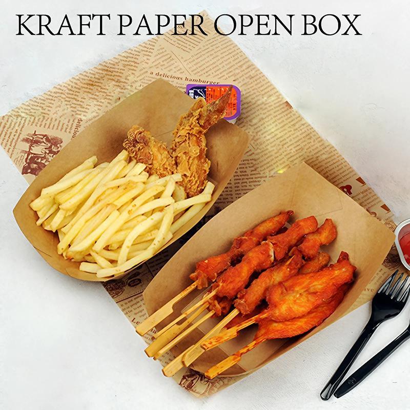 Kraft Paper Boat Tray Biodegradable Multi Size Serving Food Safe Fries Rice Deli
