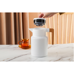The Kylin 304 stainless steel Japanese Vacuum Jug 1.3L is a sleek and functional way to keep your beverages hot or cold for extended periods. Made from high-quality 304 stainless steel, this vacuum-sealed jug is durable and long-lasting. The inner chamber is vacuum-sealed to maintain the temperature of your beverages for hours, whether hot or cold. With a 1.3L capacity, this jug is ideal for serving a few people at once. The Kylin Japanese Vacuum Jug features a push-button spout for easy pouring of your beverages. The spout is designed to prevent spillage and mess, ensuring that your drinks stay in the jug and not on your table. The handle is ergonomically designed to provide a comfortable grip and is securely attached to the jug, making it easy to carry and pour. This jug is perfect for use at home, in the office, or for outdoor activities such as picnics or camping. It's also easy to clean, with a wide mouth that allows for easy access to the inside of the jug.
