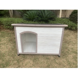 YES4PETS L Timber Pet Dog Kennel House Puppy Wooden Timber Cabin With Stripe White