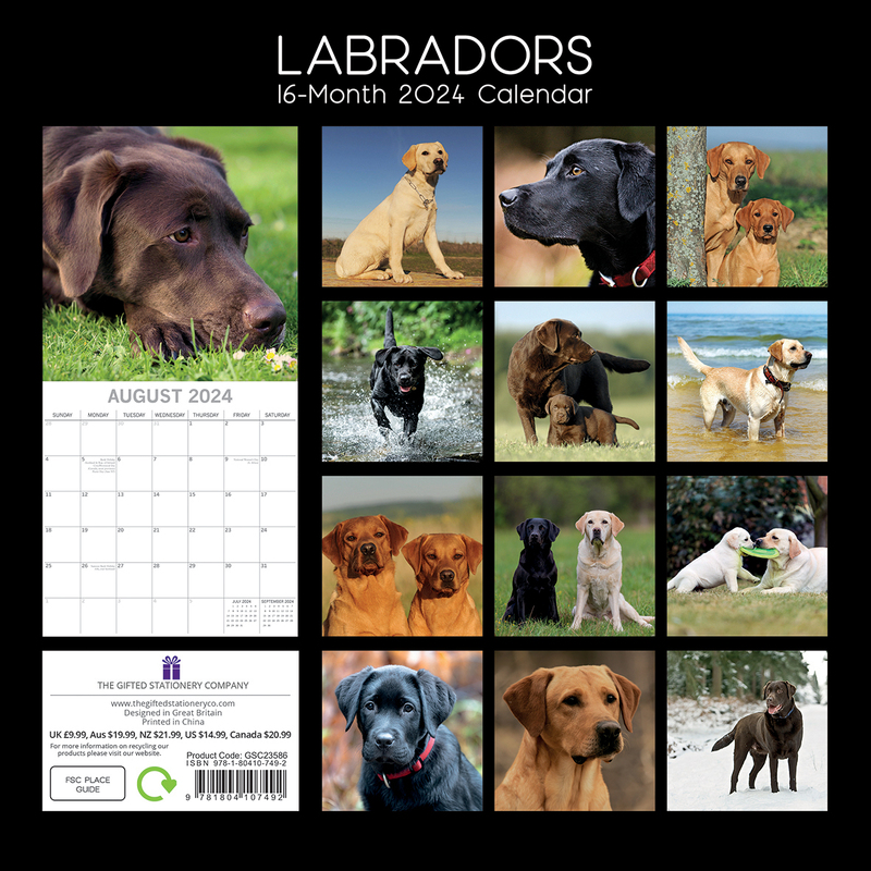 Labradors 2024 Square Wall Calendar Pets Dog 16 Months Premium Planner New Year