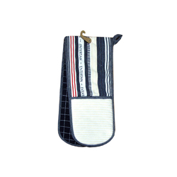 This Entertainer Charcoal Double Oven Mitt 17 x 89 cm by Ladelle is perfect for cooking, baking, and handling hot pots that protects you hands from burns. 100% AZO free dyes. Made to European Quality Standards. A convenient kitchen accessory that keeps your hand safe while cooking. If features quilted design highlighted with stripes pattern in white, navy, red, and grey colour tones. It is made from quality 100% Cotton fabric and Polyester fill.