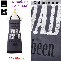 Keep your clothe clean and while cooking and baking with this Number 1 Best Dad Cotton Apron 70 x 89 cm by Ladelle. Perfect for home and commerical use. This apron is 100% AZO free dyes and made to European Quality Standards. It features a text design printed in soft colour tones of black, cream, and charcoal that will create a big statement in the kitchen. It is made from quality and soft 100% cotton fabric with easy care properties.