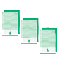 Ladelle Set of 6 Christmas Xmas Festival Joyful Icons Cotton Tea Towels Christmas Tree