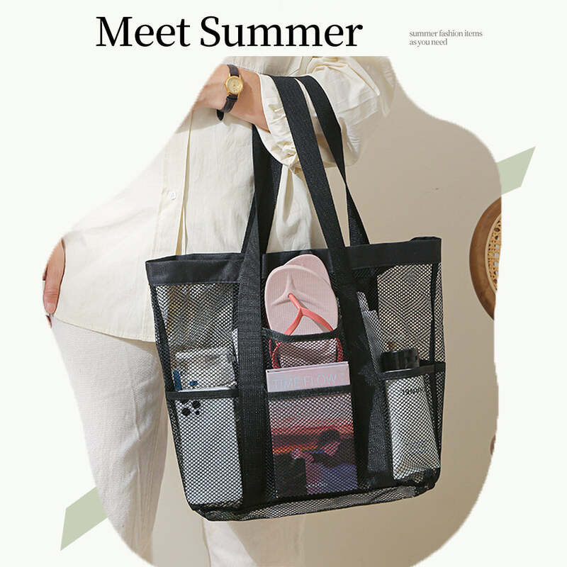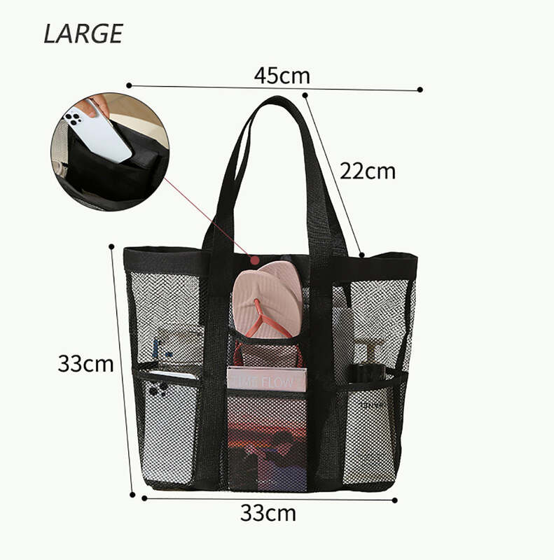 Large Capacity Mesh Multi-pocket Beach Bag Portable Travel Swimming Storage(Large)