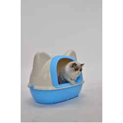 Large Hooded Cat Toilet Litter Box Tray House With Scoop Blue