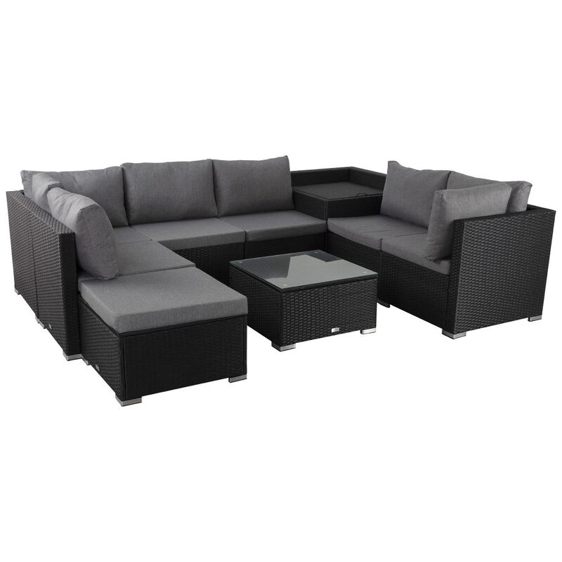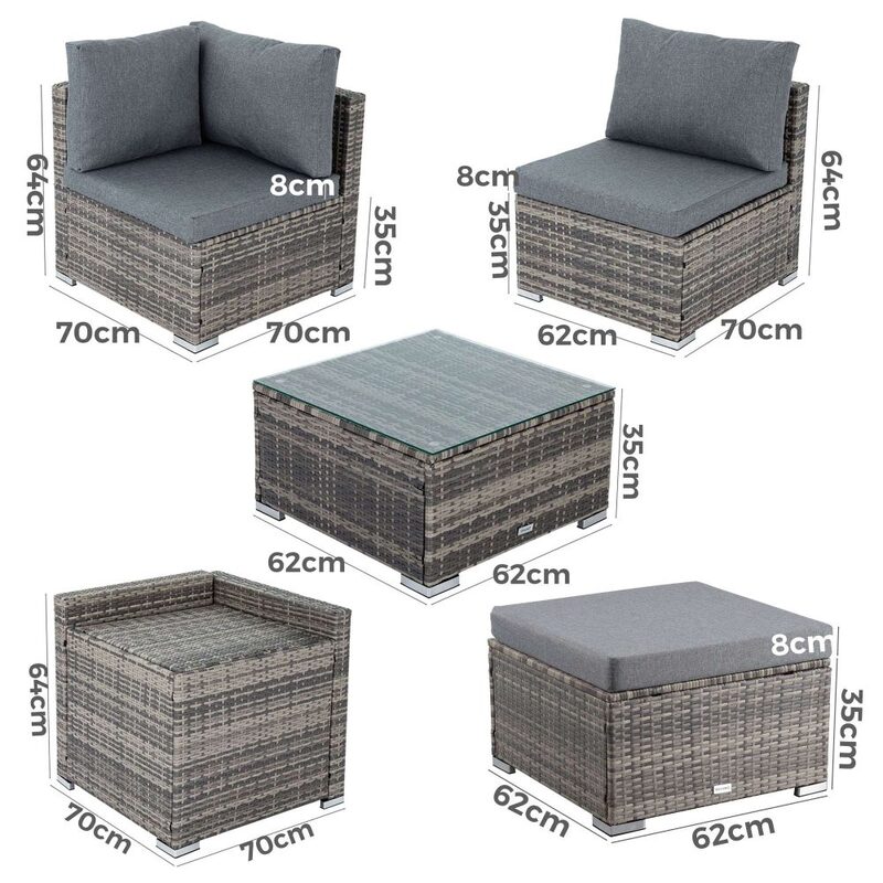 Create a classic resort on the patio with this outdoor furniture sofa ensemble.The patio conversation set suitable for any decorative style and scenes, a variety of layouts and combinations based on each of them, depending on your needs and better space utilization, no matter indoors or outdoors. The tempered glass coffee table sophisticated touch and easy to cleaning, with more space for place drinks, meals, and other accessories, fashionable and convenient. All-Weather black PE wicker and Anti-Rust steel frame to make this wicker patio furniture set very durable and sturdy.