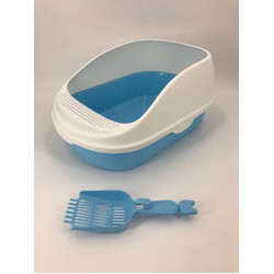 YES4PETS Large Deep Cat Toilet Litter Box Tray High Wall with Scoop Blue
