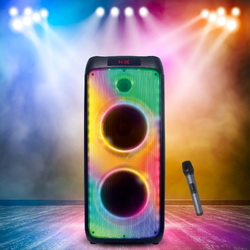 Boasting 5 different colour-changing LED light show, an impressive 120 watts powerful sound. Bluetooth connectivity, TWS, EQ Mode, 8 sound effects, karaoke mode, built-in rechargeable battery and remote control for endless entertainment anywhere and everywhere.